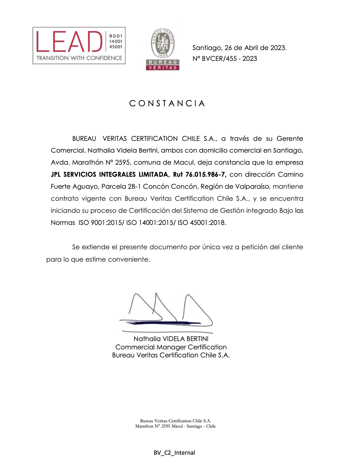 BUREAU VERITAS CERTIFICATION CHILE S.A.